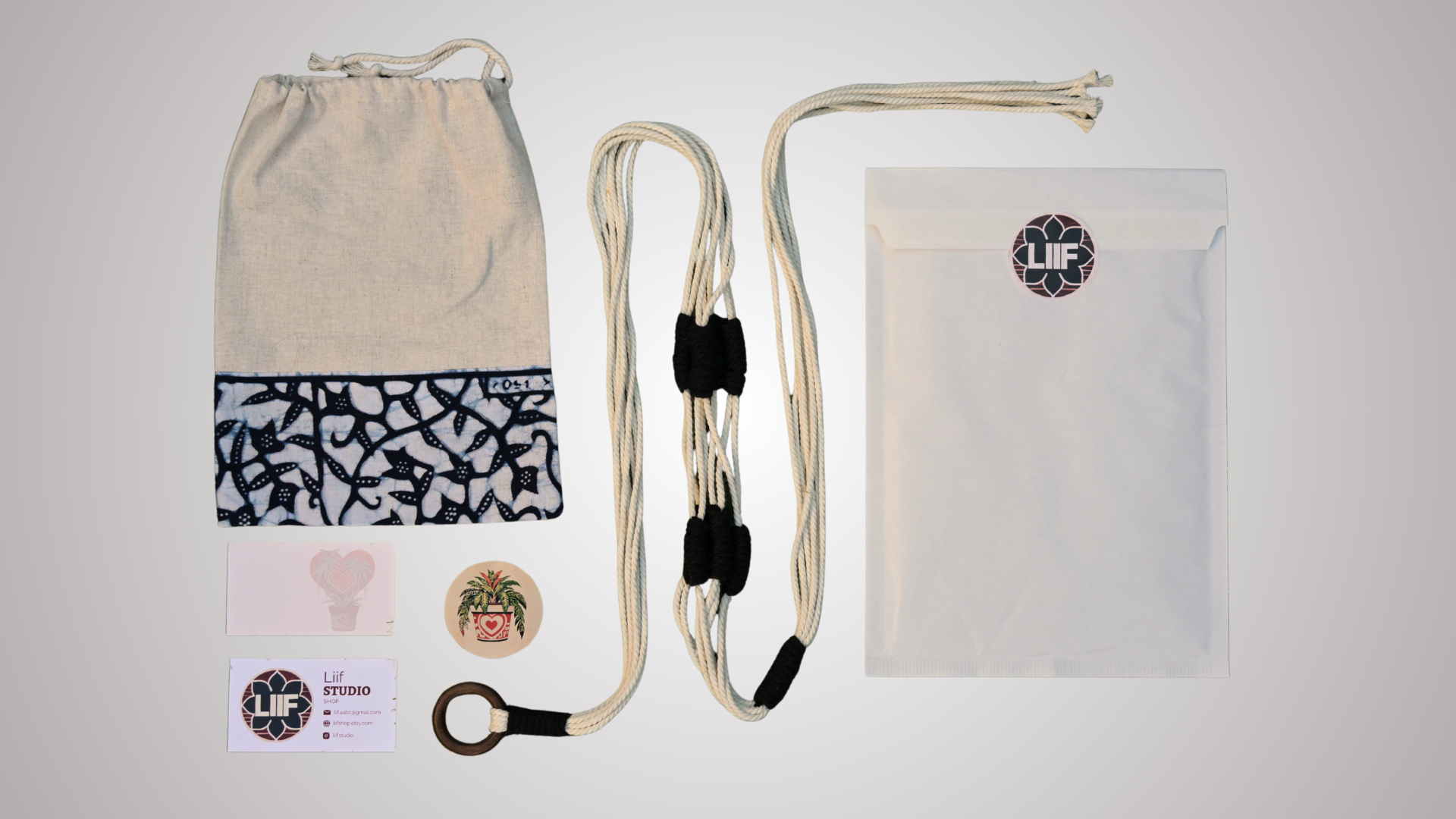 Chez Liif, chaque suspension arrive chez toi dans une pochette confectionnée à la main, réalisée à partir de tissus récupérés et de nos propres chutes de cordes. Une manière de prolonger notre démarche responsable, tout en offrant un emballage unique et réutilisable. Ton colis s’accompagne aussi de petits détails pensés pour toi : des autocollants, une carte, et cette attention particulière fait de chaque commande un moment singulier. Parce que recevoir une suspension Liif, c’est plus qu’un achat : c’est un petit moment de douceur.