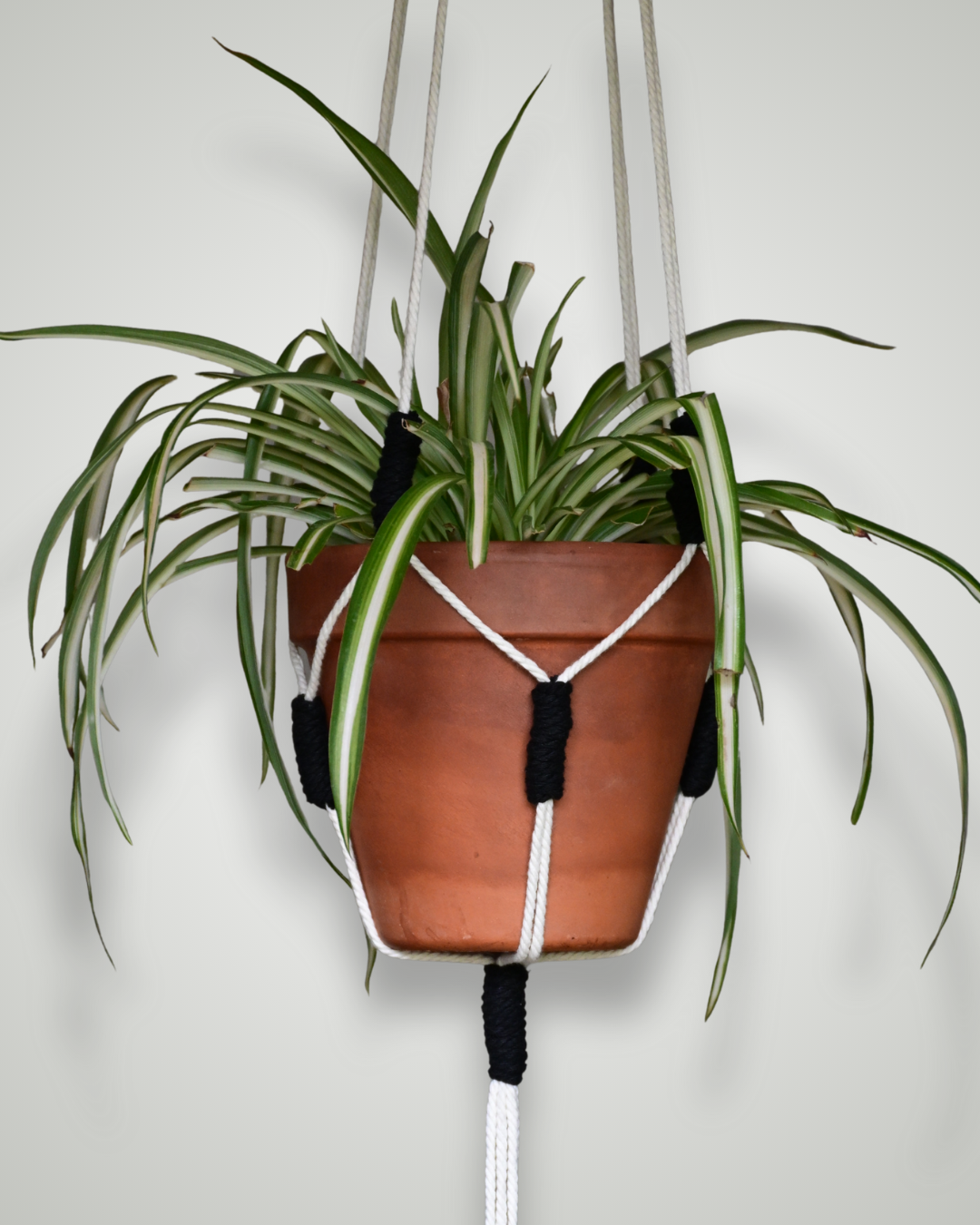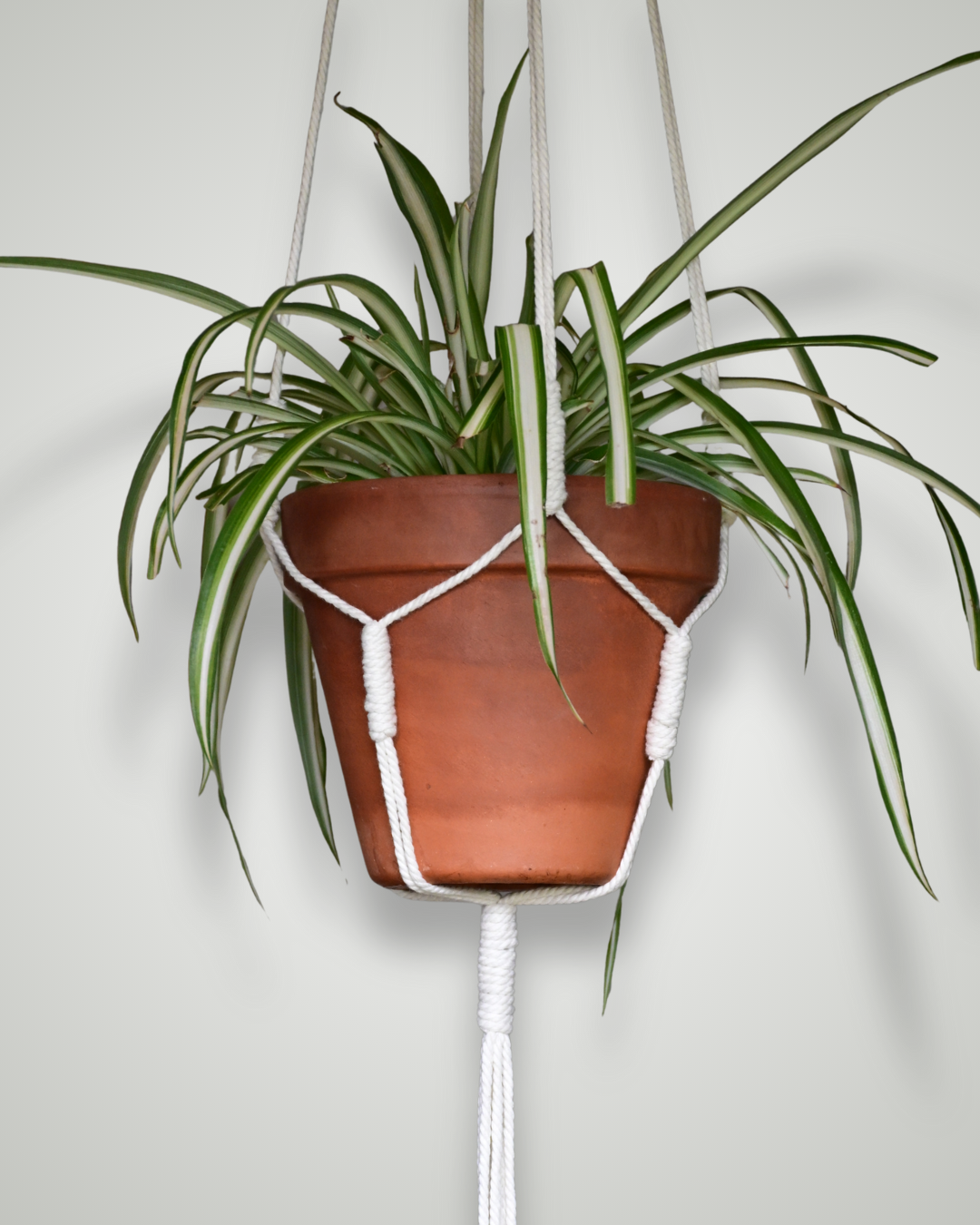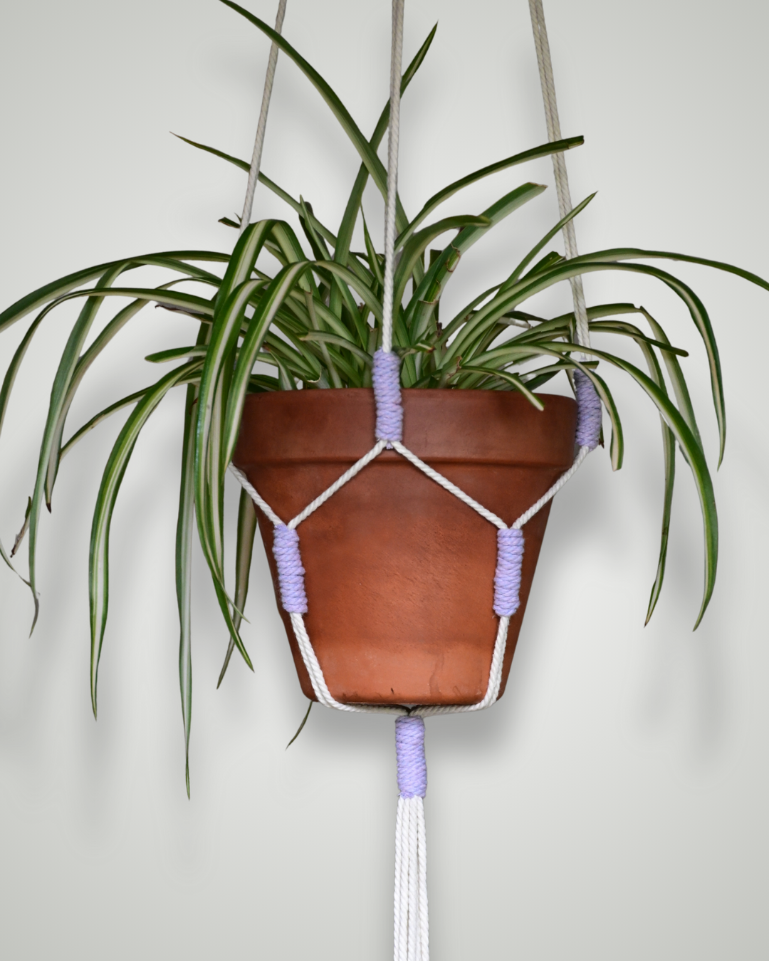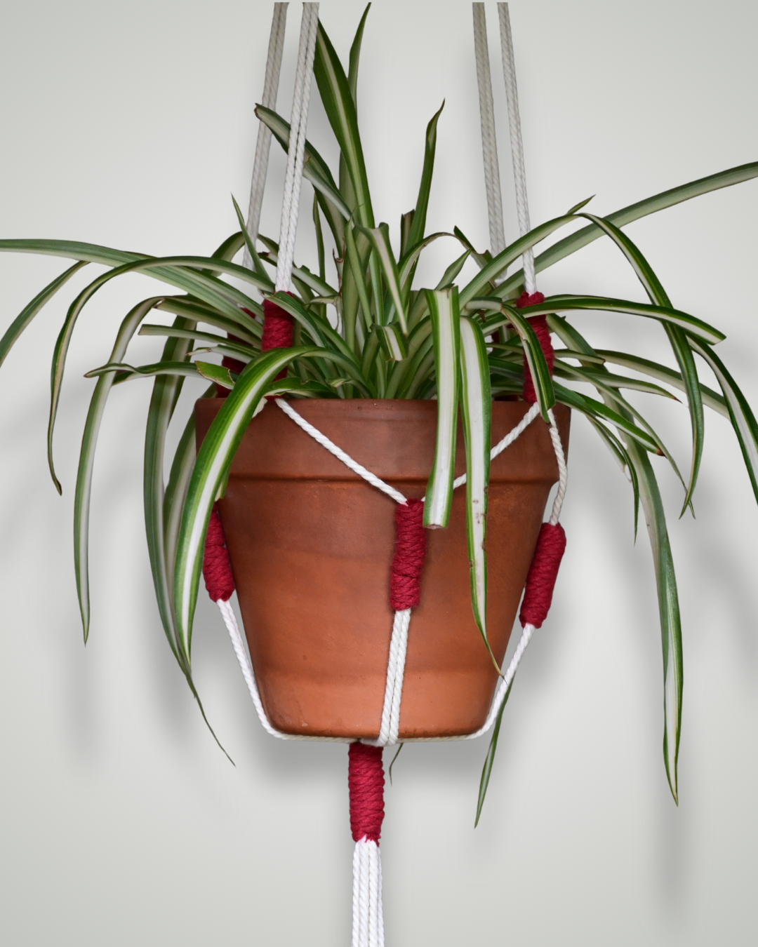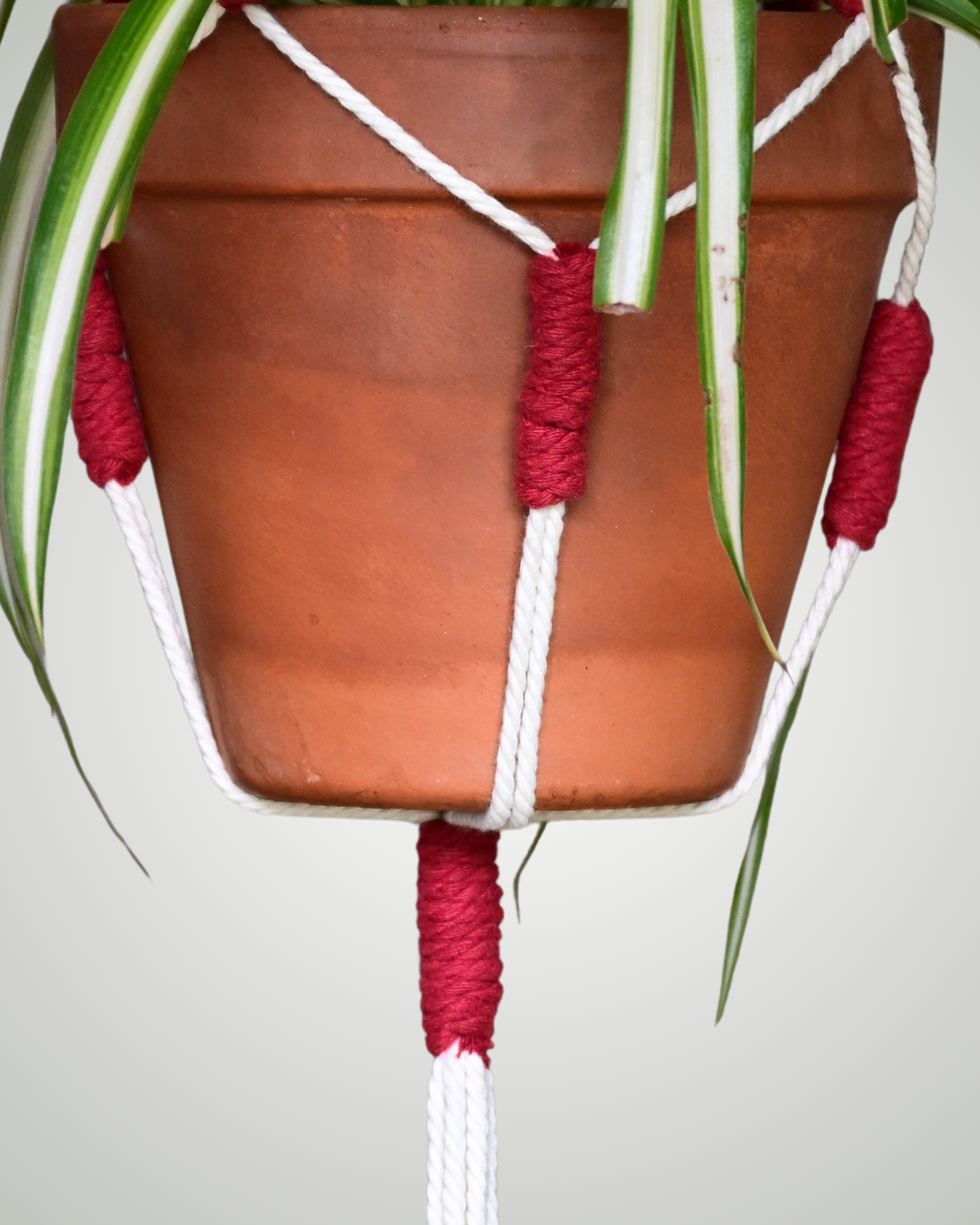 Le modèle 100 revisite la suspension classique : chaque nœud est remplacé par un lien coloré, offrant une version plus vive et créative. Fait main en coton, il s’adapte à différents pots et apporte une touche joyeuse à ton intérieur. Personnalise les couleurs pour créer une pièce unique qui te ressemble.