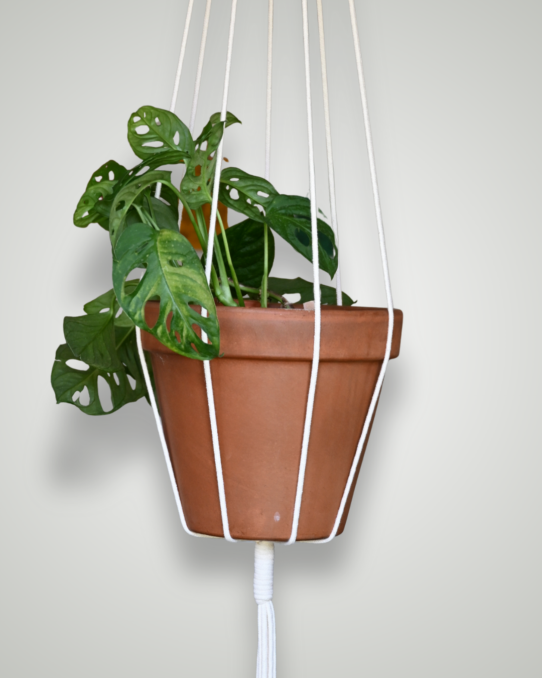 TOKA est le modèle le plus modulable : sa corde en forme d’étoile s’adapte facilement à différentes tailles et formes de pots. Tu peux l’arranger à ta façon, pour mettre en valeur la singularité de chaque plante. Une suspension artisanale originale et personnalisable, conçue pour ceux qui aiment la liberté.